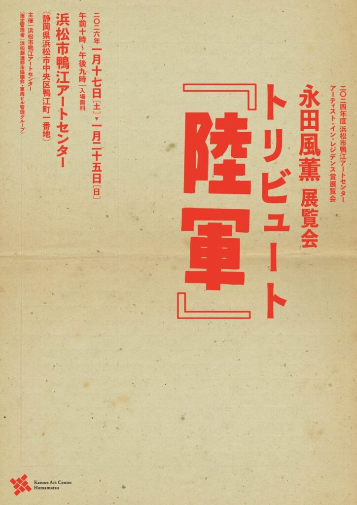 このたび浜松市鴨江アートセンターでは、当館アーティスト・イン・レジデンス賞(2024年度)を受賞された永田風薫さんの展覧会を開催いたします。
